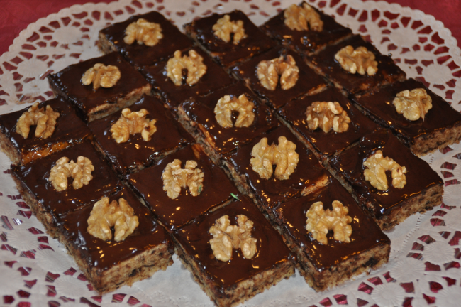 Walnussplätzchen Zutaten: 200 g Butter, 120 g Zucker, ½ Vanilleschote, 8 Eigelb, 180 g. Dinkelmehl (630), 8 EL Rum, 3 EL Zitronensaft, 2 Msp. Backpulver, 140 g Haselnüsse, gemahlen, 140 g Walnüsse gemahlen, 140 g geriebene Zartbitter-Schokolade, Piment, gemahlen, Kardamom, gemahlen, Salz, Saft einer halben Zitrone, Aprikosenmarmelade, Schokoglasur (ca. 250 g) Die nachfolgenden Buchstaben vor…